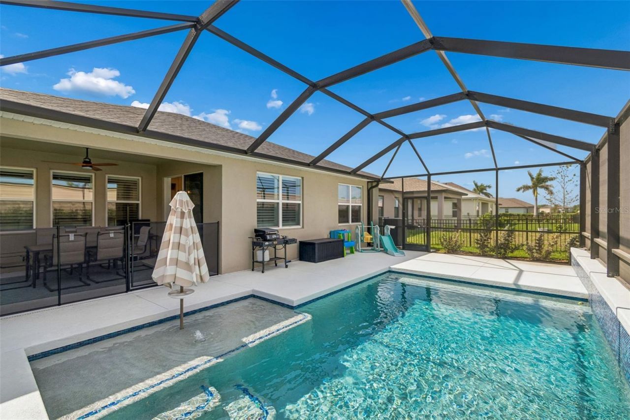 Priced lower than appraisal - A Rare 2024 Pool Home by Inland HomesBuilt in 2024 by Inland Homes and already enhanced with premium upgrades, this exceptional residence offers something new construction cannot - a private pool ready from day one.Whether enjoying crisp winter evenings or peak Florida sunshine, the pool's combination heater and chiller system keeps the water at the perfect temperature year-round. Required safety alarms and gates are already installed, offering built-in peace of mind. The sundeck invites relaxation and play, creating a true outdoor retreat that feels like a natural extension of the home.Inside, thoughtful design meets refined comfort. The chef-inspired kitchen blends beauty and functionality with a generous walk-in pantry and an intuitive layout ideal for both daily living and elevated entertaining. The screened-in lanai sets the stage for alfresco dining during Florida's cooler months, while the expansive open-concept living area seamlessly accommodates everything from casual gatherings to elegant dinner parties.Just off the main living space, a beautifully designed pocket office provides the perfect space for managing daily life or working from home in quiet comfort.The primary suite is a private sanctuary featuring: Dual sinks, Dedicated vanity area. An exceptionally spacious walk-in closet reminiscent of a boutique dressing roomA thoughtfully designed split floor plan enhances privacy, positioning the primary suite on one side of the home while guests or family enjoy their own wing complete with a full bath and tub.Additional Notable Upgrades Include: Water softener system Expanded driveway for enhanced curb appeal and practicality Upgraded light fixtures and ceiling fans throughout Custom interior shutters in the living area Generator transfer switch for seamless preparednessThis is turnkey luxury with intentional upgrades - without the build time, construction noise, or added expense.For buyers seeking comfort, style, and premium enhancements in a 2024 home offered below appraised value, this residence truly stands in a class of its own.
