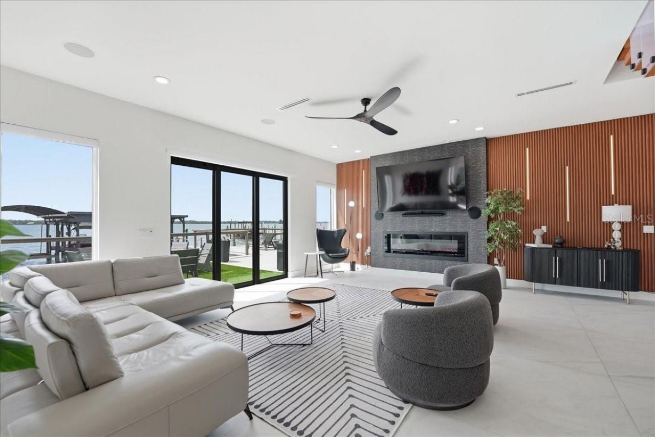 Modern Waterfront Masterpiece on Merritt Island with 142 Feet of Direct Indian River Frontage-this 2024-built, two-story luxury residence offers a rare combination of cutting-edge design, solid construction, and true Florida waterfront living. Built with full concrete block construction on both levels and topped with a commercial-grade roof, this home delivers both style and substance in a way that is virtually unmatched on the island. Featuring 5 bedrooms, 4 full bathrooms, and a 2-car garage, the property comes fully furnished and move-in ready, making it ideal as a primary residence or a high-end vacation retreat. Inside, you'll find designer finishes throughout, including a sleek modern kitchen, custom built-in closets, high-end lighting, motorized shades, smart home features, and smart toilets in multiple bathrooms. The expansive upstairs primary suite is a true showpiece, offering a private covered terrace overlooking the water, a massive wraparound closet, and a spa-inspired bathroom with a dramatic wall of designer tile and luxury shower. Outdoor living is just as impressive, with a large side yard, putting green, and a covered boat dock with lift plus a jet ski dock-perfect for enjoying deep water access to the Indian River and quick routes to the Atlantic Ocean or cruising toward Cocoa Village. From your west-facing balconies, take in breathtaking sunsets along with daily sightings of dolphins, manatees, and pelicans. Located on prestigious South Tropical Trail, just minutes to Cocoa Village, approximately 45 minutes to Orlando International Airport, and about an hour to Disney World, this home offers a rare blend of privacy, accessibility, and lifestyle. Truly a one-of-a-kind, turnkey modern waterfront property in Central Florida.