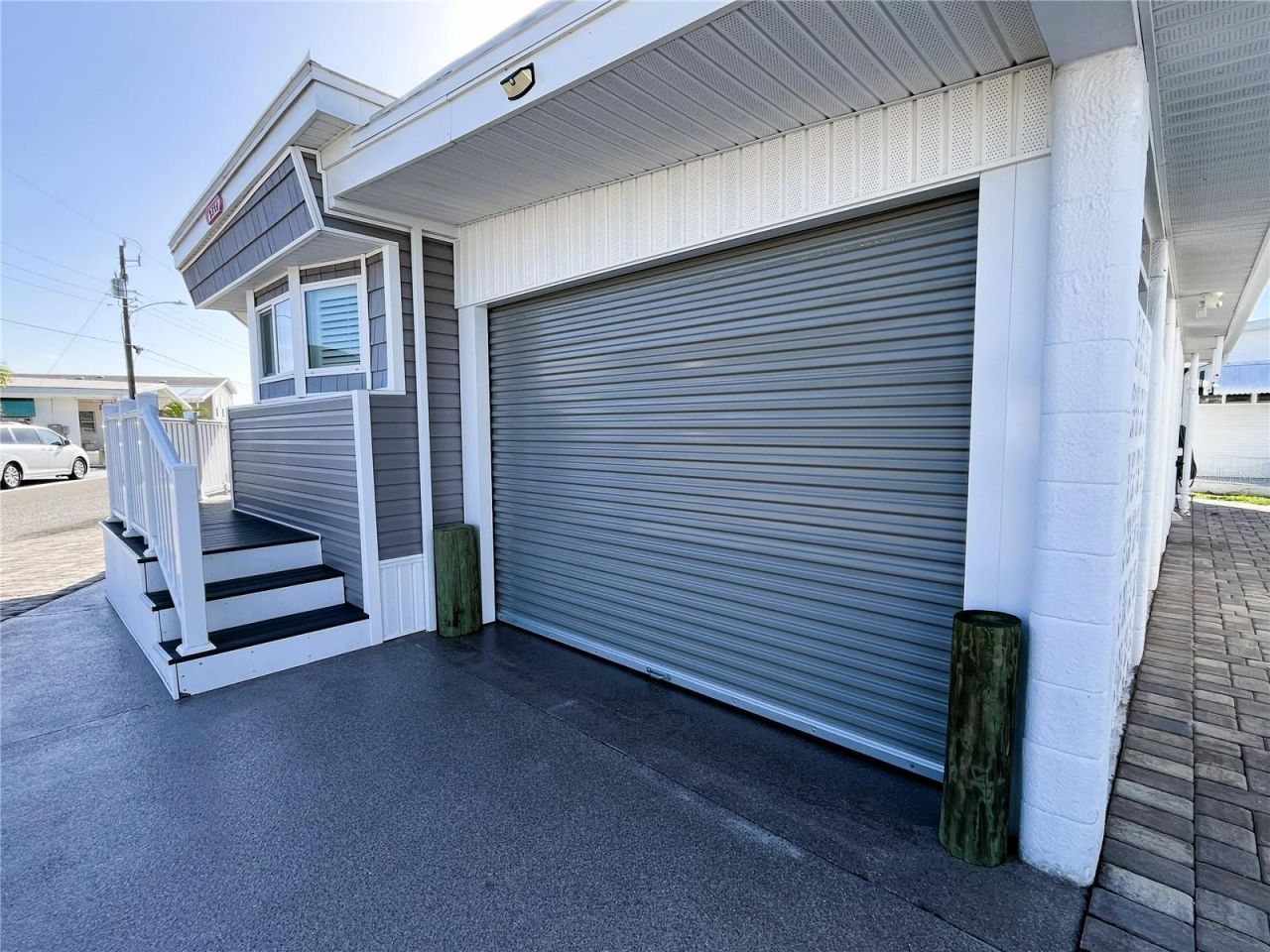 This charming 2-bedroom home features a roll-down garage door leading into a secure, block-constructed carport with metal gates and an epoxy floor-creating a rare and highly functional space for vehicle storage, golf carts, and everyday living. The block design provides privacy and protection and leads to a dedicated half bath and combined laundry area.Inside, this beachside cottage offers warmth and personality throughout. Plantation shutters, updated flooring (approximately 3 years old), and thoughtful details create a comfortable coastal feel. The primary bedroom features California Closets (2025) with a king bed. The spacious guest bedroom has a queen adjustable bed. The home is being sold furnished, including a fun yellow beach bike.While the home features one full bathroom inside, additional conveniences include an outdoor shower room and a separate half bath located within the block utility structure.Outdoor living is equally inviting, with gorgeous paver areas in both the front and back, an elevated front porch with railing and charming shaker-style accents, and a private rear patio perfect for relaxing or entertaining.Additional updates include A/C (2019), ductwork and blower (2025), and a concrete pad beneath the entire home.Located in Trailer Estates, a Special Park and Recreation District governed under Chapter 418, Florida Statutes, residents own their land so there is no lot rent, CDD, or HOA fees. The annual park tax covers cable, high-speed internet, trash pickup, fire and rescue services, and access to outstanding amenities, including a marina with rentable boat slips, private beach, pool, hot tub, fitness center, shuffleboard, bocce ball, pickleball, woodshop, and nearly 60 active clubs and social events. Experience one of Sarasota Bay's most vibrant and welcoming 55+ communities.