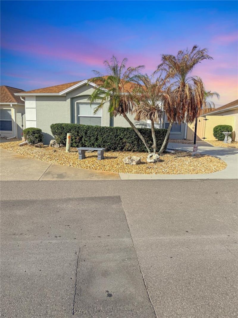NO BOND! Discover refined, low-maintenance living in this beautifully appointed courtyard villa located in the highly sought-after Village of De La Vista South, perfectly positioned between Lake Sumter Landing and Spanish Springs Town Square with convenient golf cart access to premier dining, shopping, and entertainment. This charming residence showcases tile flooring throughout, creating a seamless and elegant flow, while the enclosed Florida room adds valuable living space filled with natural light and features a built-in pet door for easy access to the private, fully fenced courtyard-ideal for relaxing or entertaining. The spacious primary suite offers a walk-in closet and a well-appointed en-suite bath with a stand-up shower, while plantation shutters, modern cordless window shades, and ceiling fans throughout the home enhance both style and comfort. The kitchen has been tastefully upgraded with granite countertops, offering both beauty and durability. Whether you are seeking a full-time residence, seasonal retreat, or investment opportunity, this exceptional villa offers the perfect blend of location, comfort, and value-homes like this are rare, so schedule your private showing today.