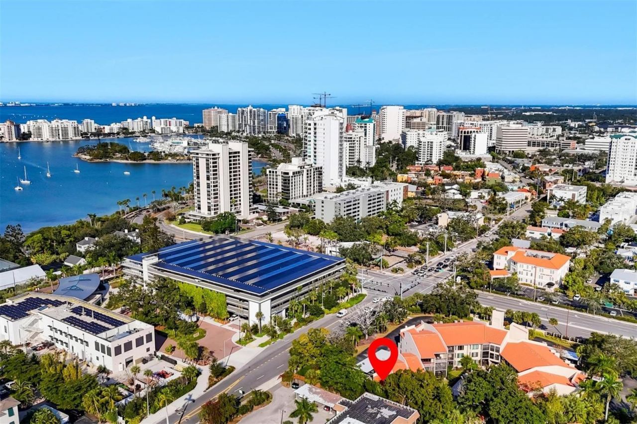 Unbeatable value and location in downtown Sarasota. This 3-bedroom,3 full bath residence lives more like a townhome than a condo. No elevators, park right in front of your front door and walk out to the pool. Ideally located across from Selby Gardens and only one block from Sarasota Bay. Hudson Harbour is not in a flood zone, has covered parking and is pet-friendly, allowing one small dog and multiple cats. The three versatile bedrooms in this residence provide exceptional flexibility. The first-floor bedroom & bath can serve as a convenient primary suite, while the second-floor option offers additional privacy-ideal for guests, family, hobbies, or a home office. Enjoy two private balcony lanais overlooking a lush tropical garden and tranquil fountain, creating the perfect setting for morning coffee or relaxing evenings. Inside, the home features light soft neutral tones complemented by neutral tile flooring and elegant crown molding throughout. The thoughtfully designed kitchen includes a spacious eat-in dining area and breakfast bar that opens seamlessly to the living and dining spaces-perfect for everyday living and entertaining. Numerous updates have been completed over the years, including: Brand-new AC (2024), New windows and sliding glass doors, renovated bathrooms, updated kitchen appliances, New washer and dryer, Water heater replacement and fresh interior paint. Hudson Harbour offers a private downtown, intimate tropical setting with only 18 units centered around a heated community pool. Living here places you within walking distance to the Sarasota Bayfront Park for nightly sunsets, a boat cruise or waterfront dining and of course all of Sarasota's downtown restaurant and theater options. Outdoor lovers will appreciate easy access to Legacy Trail, Payne Park and Lido Beach. Take the free downtown trolley to St. Armands Circle and Lido Beach. Schedule a showing and don't miss this best priced Downtown Sarasota residence on the market today !